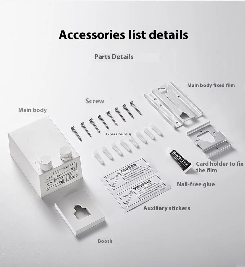 includes screws and sticky glue, enabling flexible installation on a variety of wall surfaces, including smooth walls, concrete, and tile.