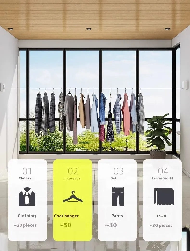 The MEILI HOME Telescopic Clothesline is a retractable, small-space-friendly clothes drying rope. It is perfect for drying clothing indoors in bathrooms, laundry rooms, balconies, or flats because it is made of a sturdy 1.5mm steel wire that reaches up to 4.2 meters.